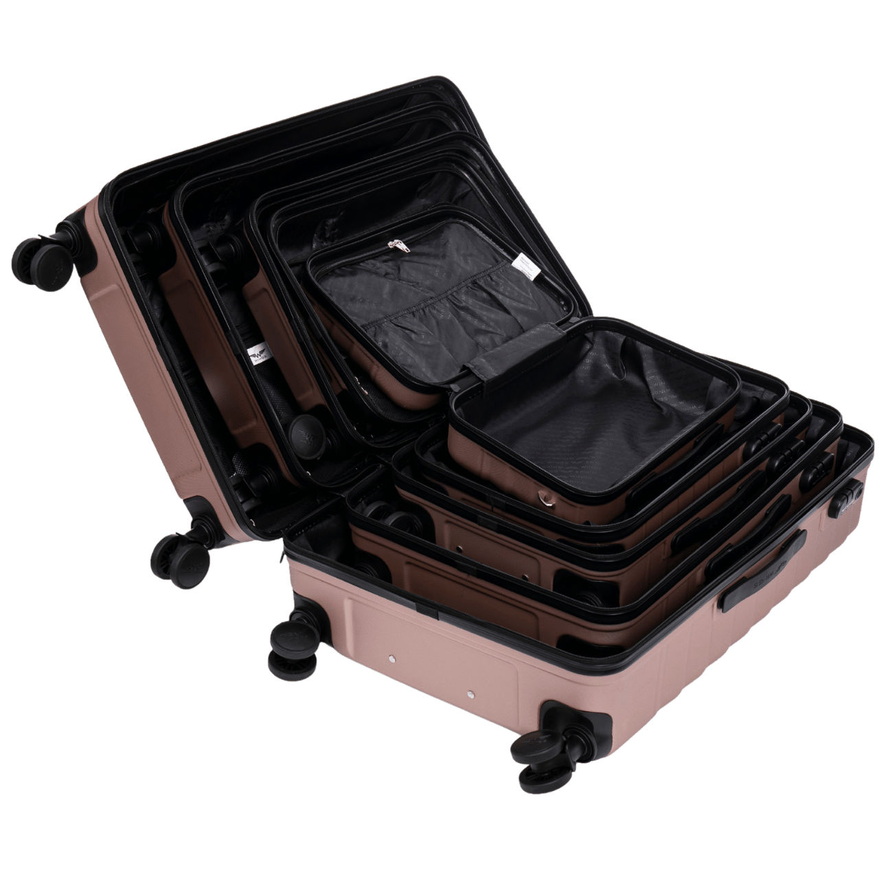 The Wings PEAFOWL set includes three suitcases in different sizes: large, medium, and cabin. With a nesting feature, they take up minimal storage space, making them very practical.