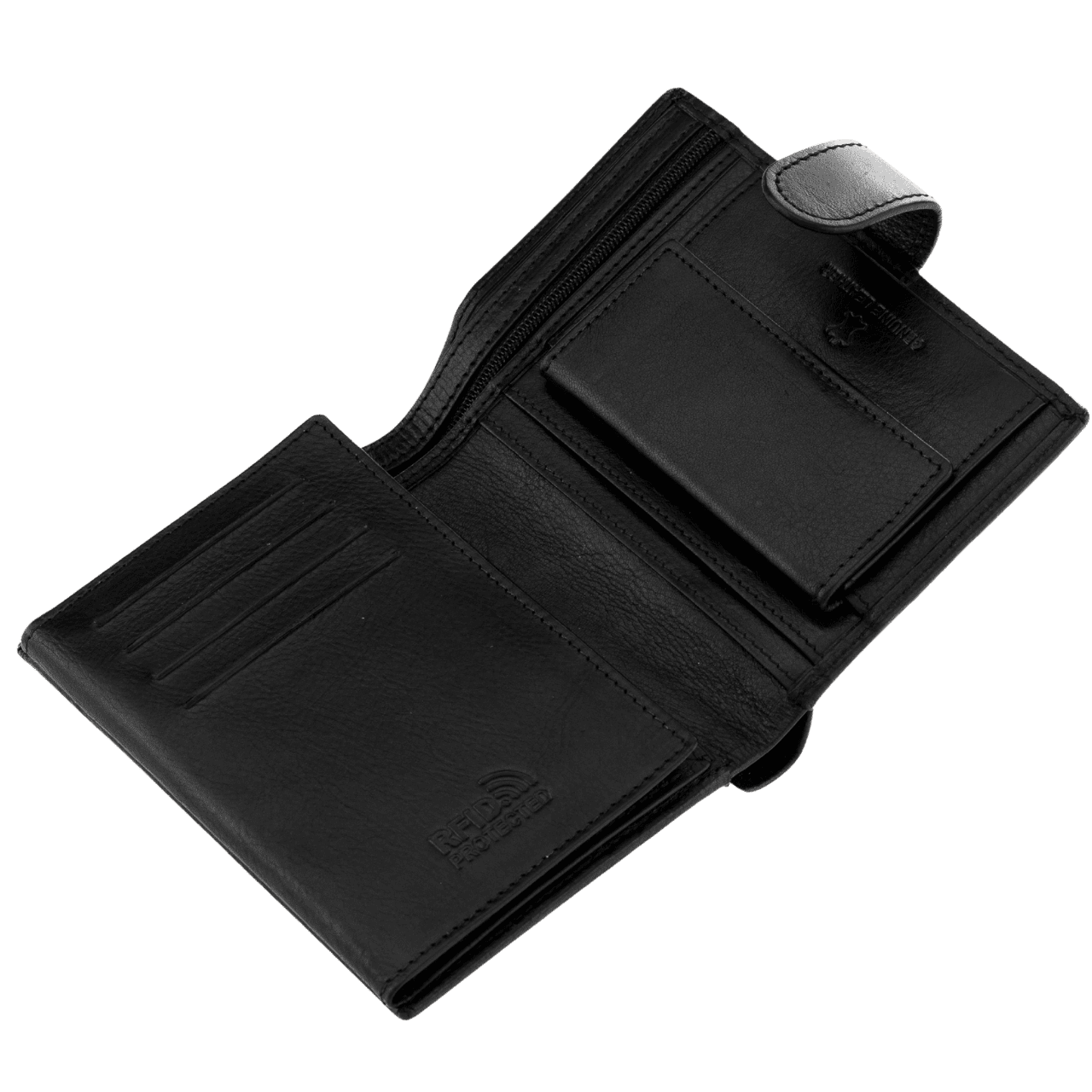 Portfel posiada funkcjonalną kieszeń na bilon, zapinaną na trwały zatrzask, który zapobiega przypadkowemu otwarciu. Dzięki niej drobne pieniądze są zawsze bezpieczne i w zasięgu ręki, gdy tylko ich potrzebujesz.