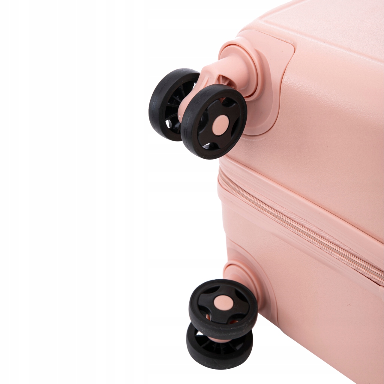 Każda walizka z zestawu BUNTING została wyposażona w regulowaną rączkę teleskopową oraz cztery podwójne kółka obracające się o 360°, co zapewnia wyjątkowo płynne i wygodne prowadzenie na każdej nawierzchni – od lotniska po brukowane ulice. Dodatkowym atutem jest praktyczny haczyk umieszczony na jednej z bocznych stopek, który pozwala zawiesić dodatkową torbę lub plecak, odciążając ręce podczas podróży.