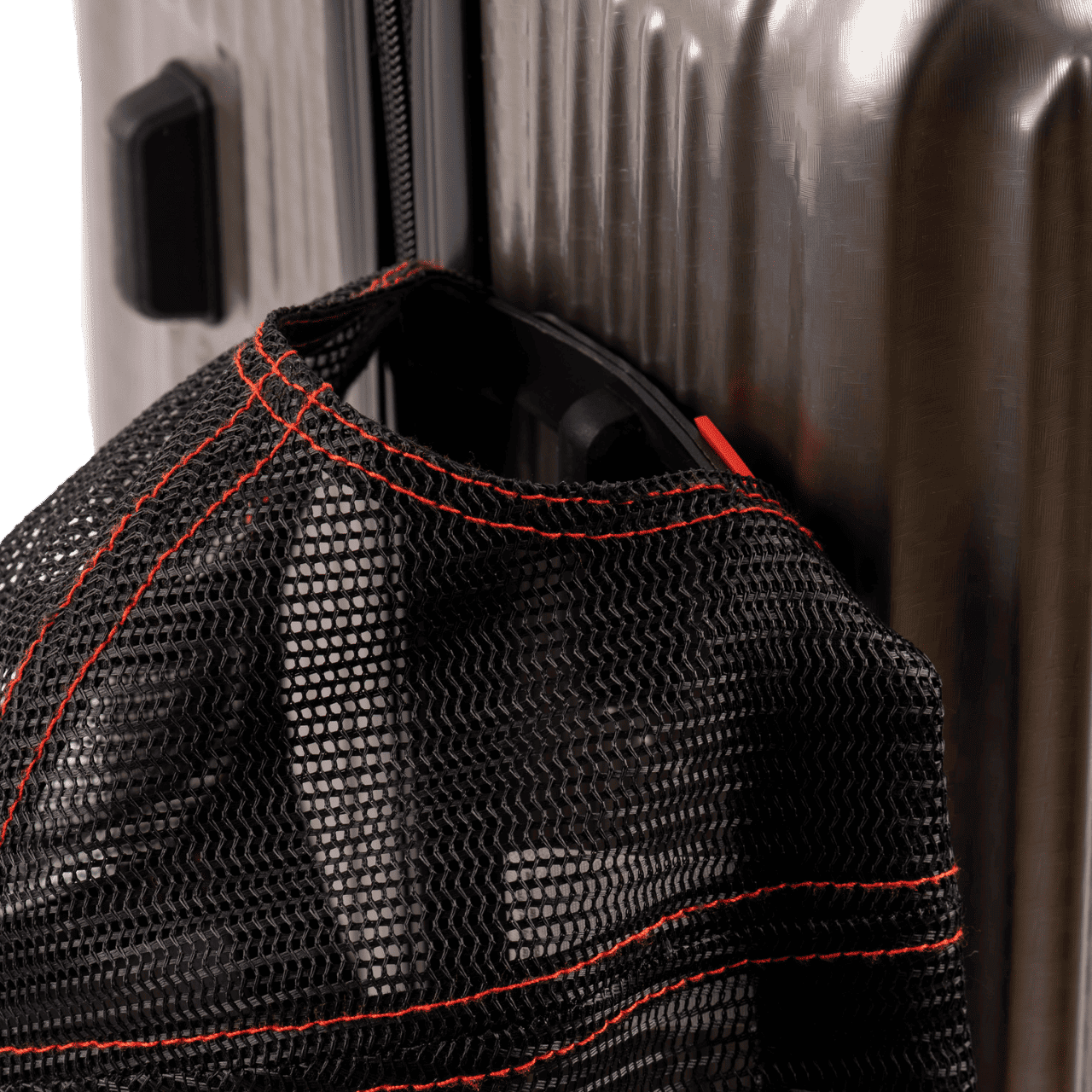 Praktyczny element konstrukcji zwiększa stabilność walizki oraz umożliwia zaczepienie dodatkowej torby lub akcesoriów podręcznych.